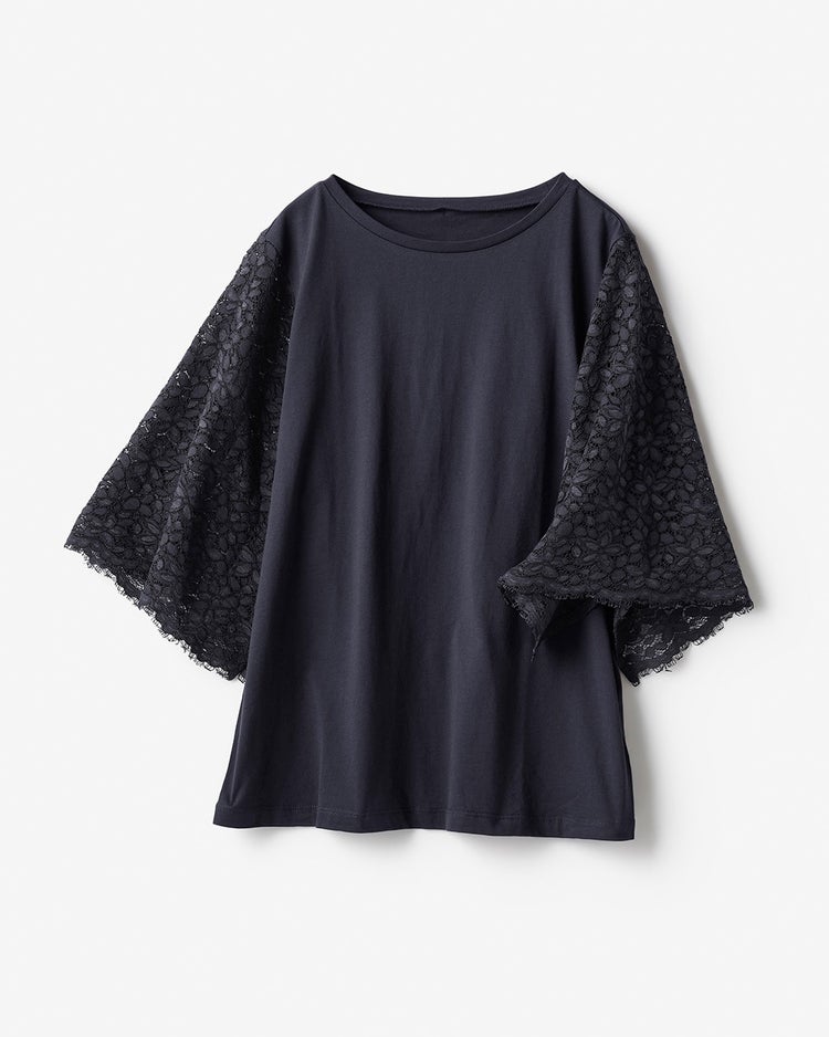 - ネイビーのレースの袖がお洒落で涼しいです。