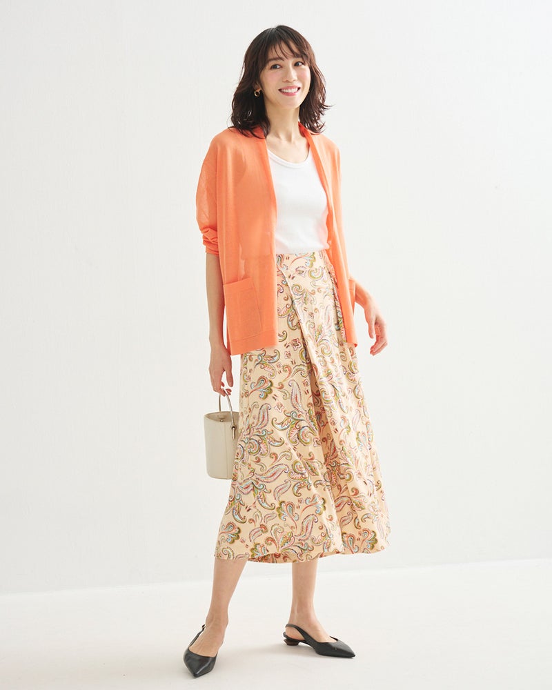 - 柄物ですが、落ち着いた柄なので、上は無地でも柄物でも合って良かったです。