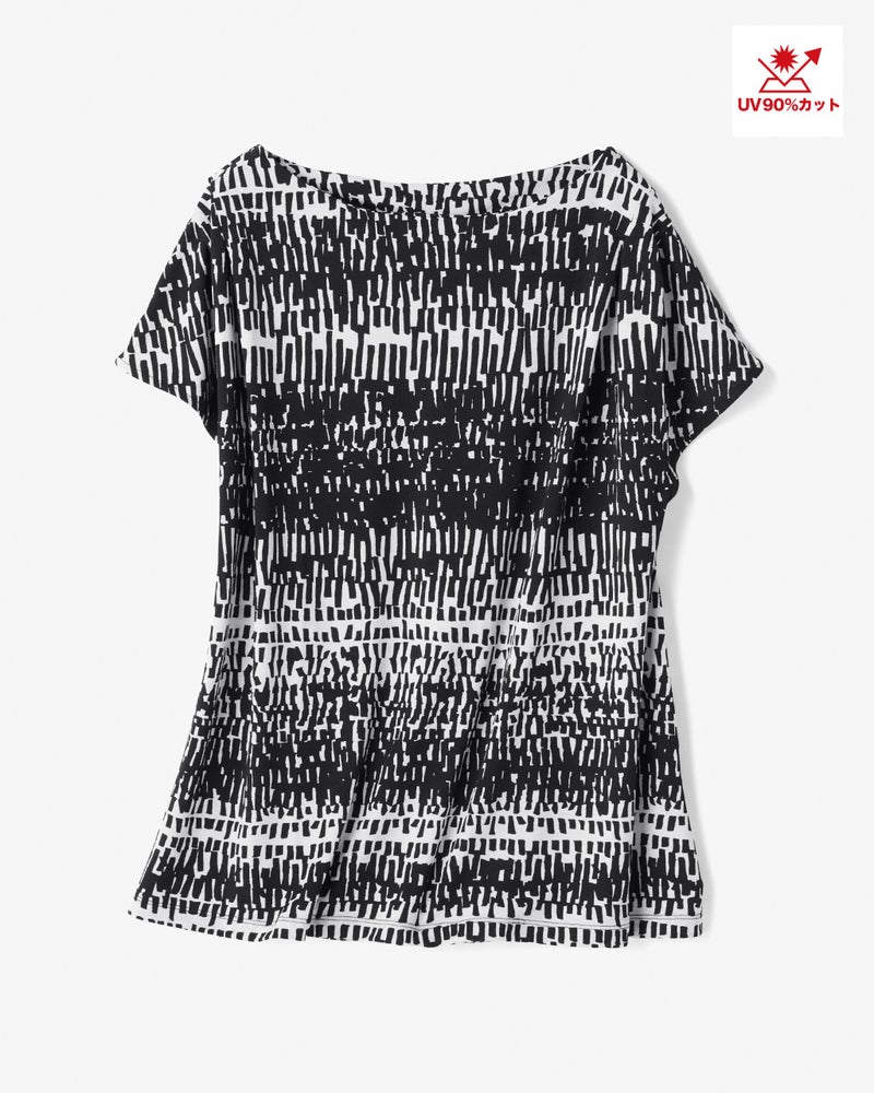 - 袖の長さや襟の開き具合、丁度良く首と腕が綺麗に見えました。UVスラブは毎年お気に入りでチェックしています。シンプルですが、肩のタックがお洒落です。最近は、ワイドなトップスばかり着ていましたが、ウエストがシェイプされ丈もおへその少し下なので、スカートでもパンツでも、綺麗目なコーディネートの時に着用しています。ただ、洗濯機で洗濯したら、色落ちしてしまい、白い洋服がピンク色に染まってしましました。(ブラック購入。)なので-1。洗濯は、単独でをお勧めします。(他のUVスクラブのブラックは、そこまで色落ちしなかったでした)