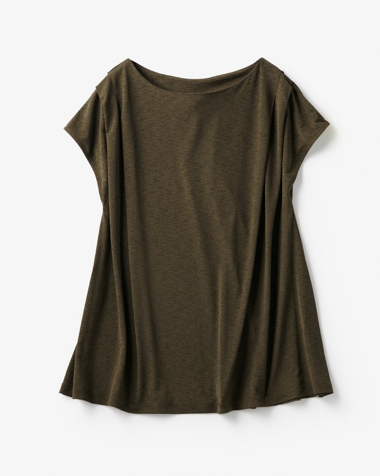 - 肩のつまみがキレイ見えのポイント。二の腕が適度に隠れるフレンチスリーブなのですっきり見せてくれます。