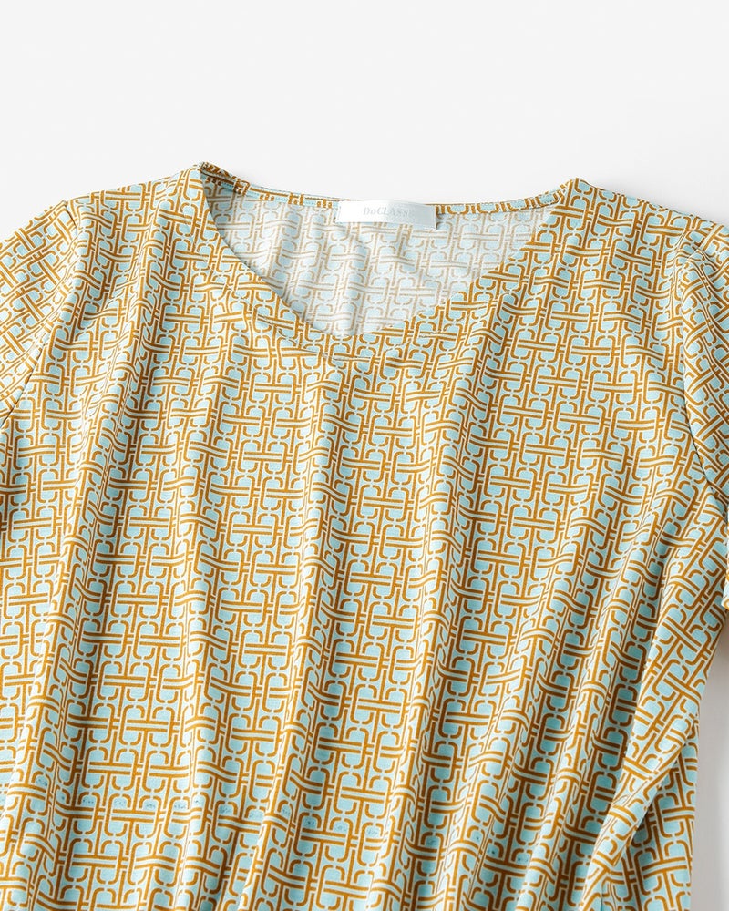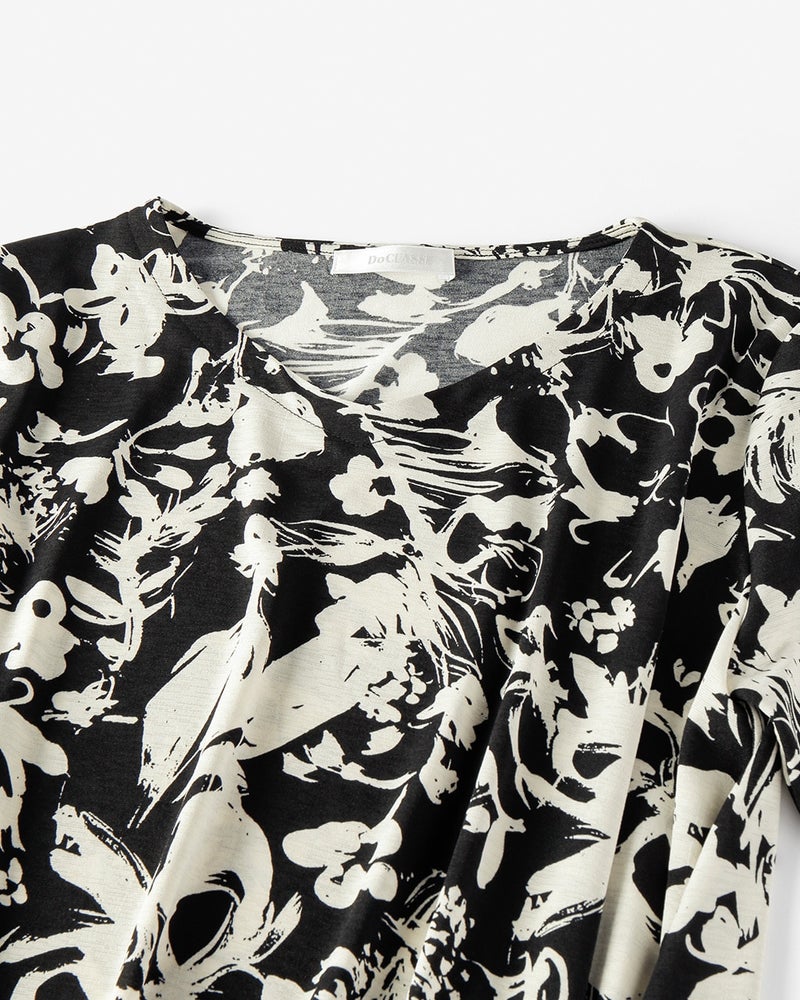 - いつもと同じLサイズ購入 朝、娘に「いいじゃん」会社で同僚2人に「素敵」「エレガント」と褒められて 嬉しいような照れくさいような。 ストンとした落ち感ですっごくスマートに見えます。袖の長さも太い二の腕を隠してくれる。リボンを後ろで結ぶのは年齢的に恥ずかしくて前でゆるく結んだらポッコリお腹のカバーにもなりました。 柄の白い部分は透けるのが気になったので中にペチコートを着ました。