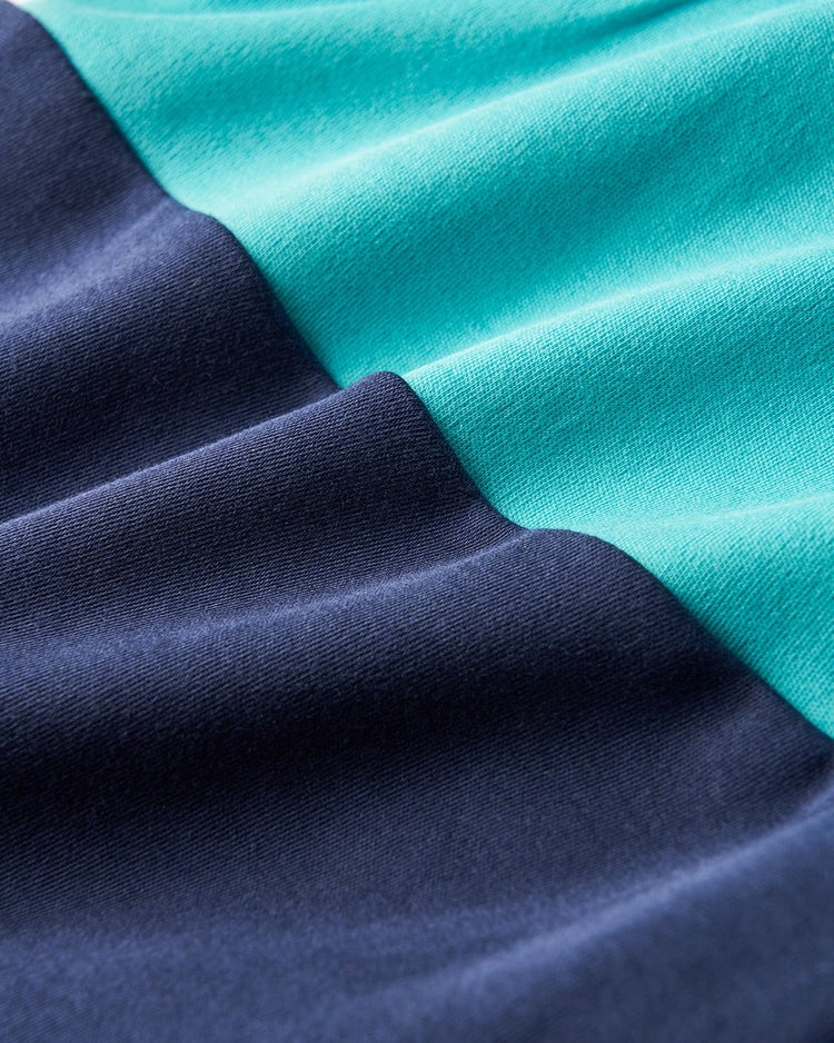 配色が鮮やかですがブラックMが完売だったのでこちらを購入。綿100素材で丈詰めできたので良かったです。