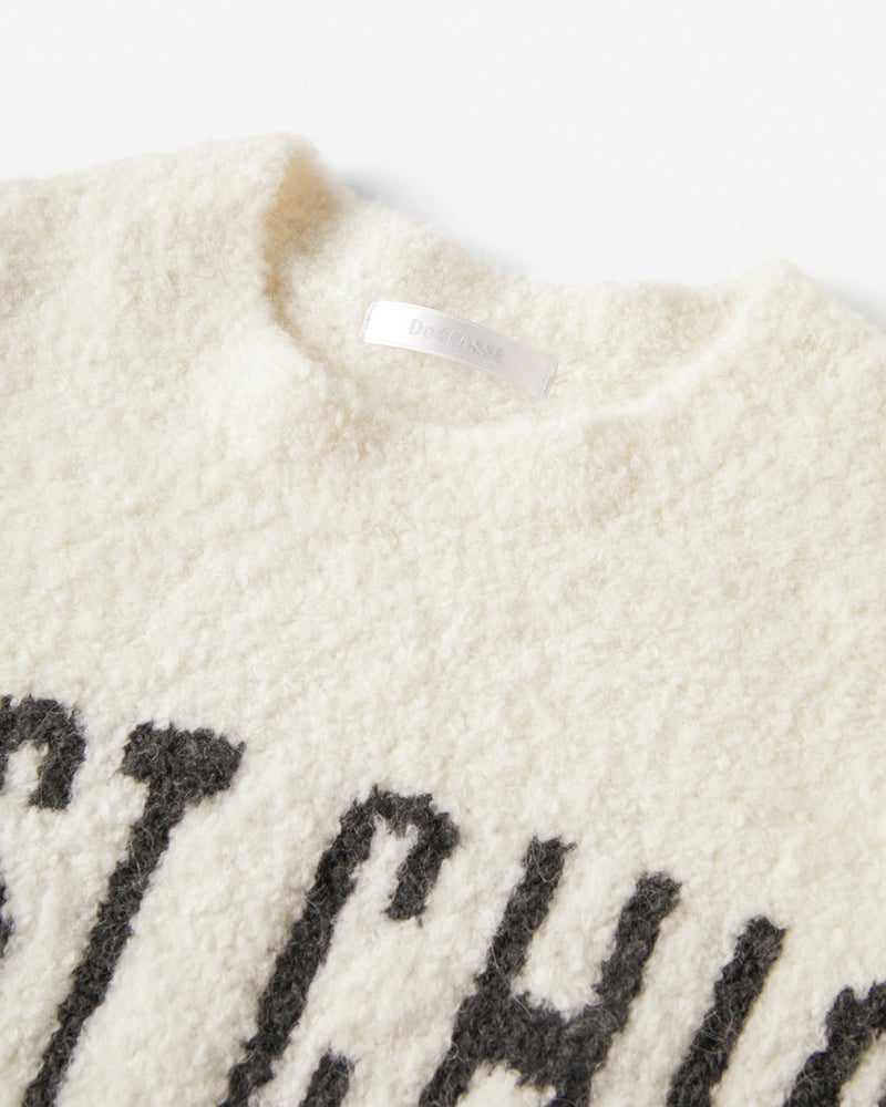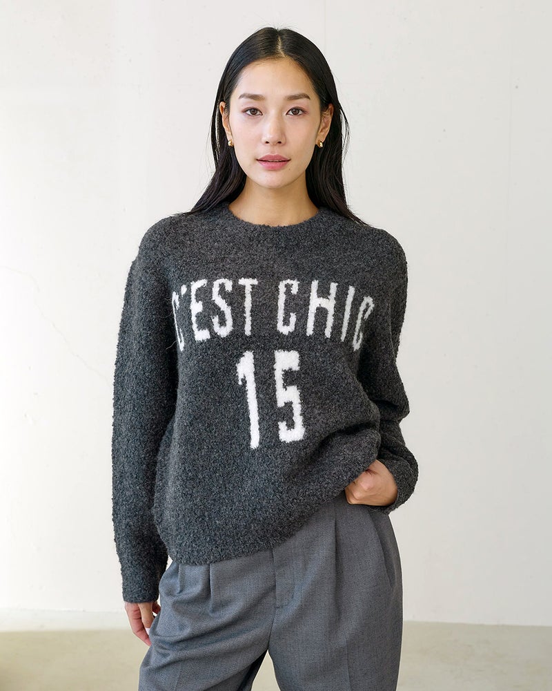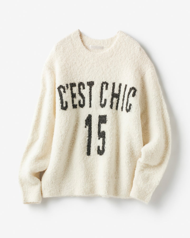 カジュアルの定番であるロゴアイテムもふわモコニットならシックな雰囲気。スカートに合わせて甘さ控えめのフェミニンカジュアルに仕上げたり、デニムに合わせてキュートに着こなしたり守備範囲の広いトレンドニットです。
