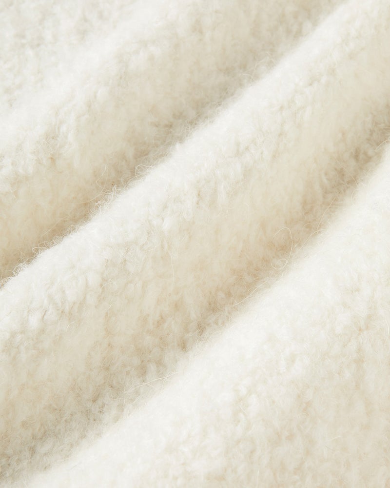 こちらのニットはアルパカ混ニットのふわふわもこもことした風合いですので、ボリュームを感じられたかもしれません。暖かみのあるかわいい風合いをお楽しみいただけますと幸いですが、ご着用が難しい場合はお気軽にお客様サービスセンターまでご相談下さいませ。