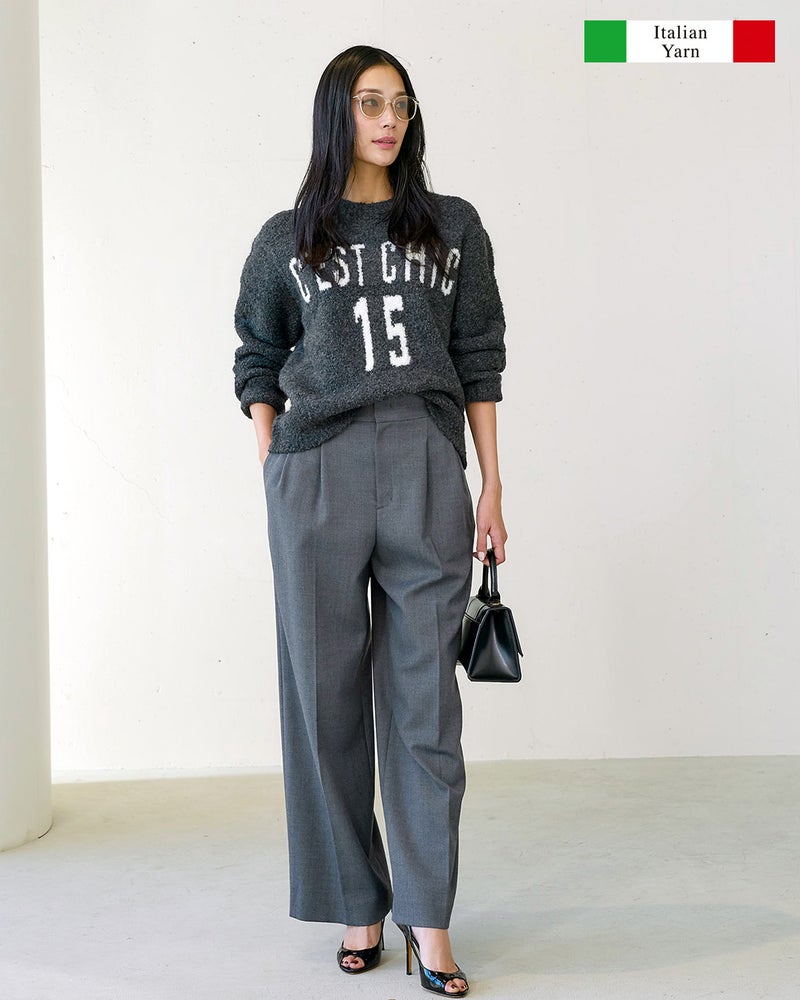 アルパカ混のニット仕立てならフレンチシックに