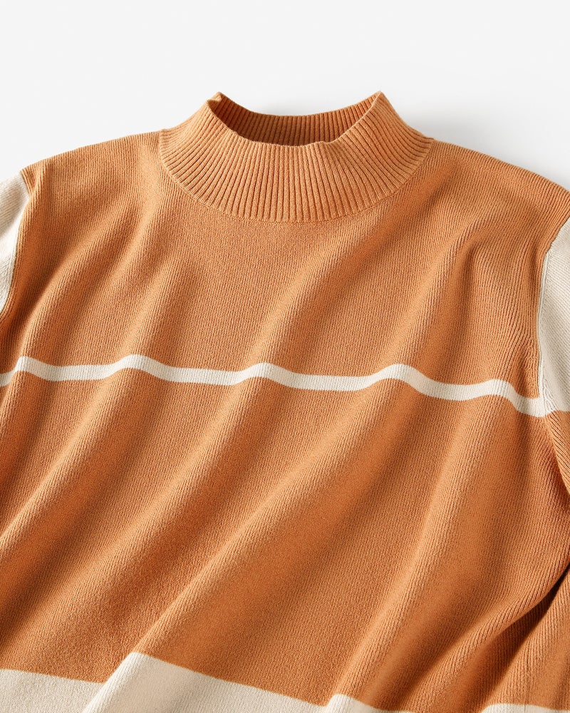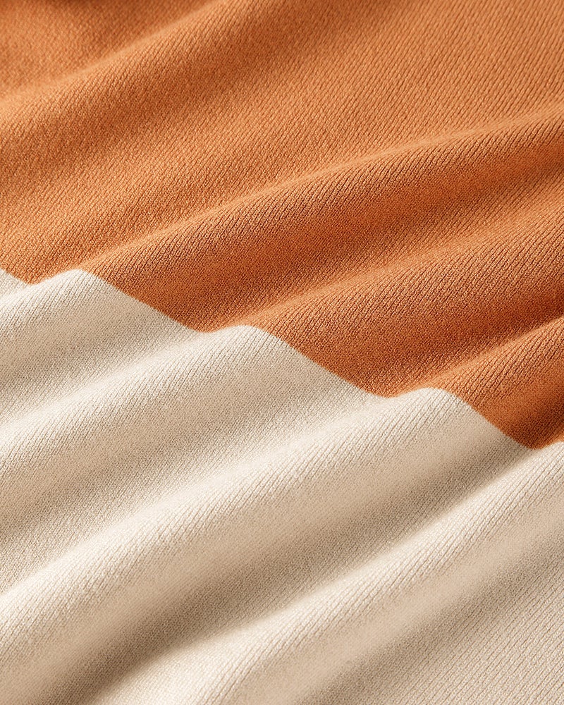 普通体型ですが、肩幅が広めなのでLサイズを購入しました。肩や首周りに窮屈感は全く無く、伸縮性があって着心地がとても良いです。グレーの色味は無く、ベージュとくすんだベージュがかったみかん色の配色に思えます。写真通りの色です。優しく落ち着いた雰囲気が出せると思います。