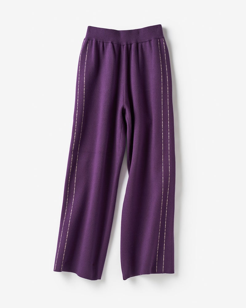 単品でも着まわしやすいワイドシルエット。サイドにはジャカード編みでステッチ柄を表現しました。上下セットで着こなせる、同素材のニットパーカー(16959)もご用意しています。