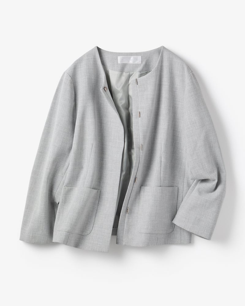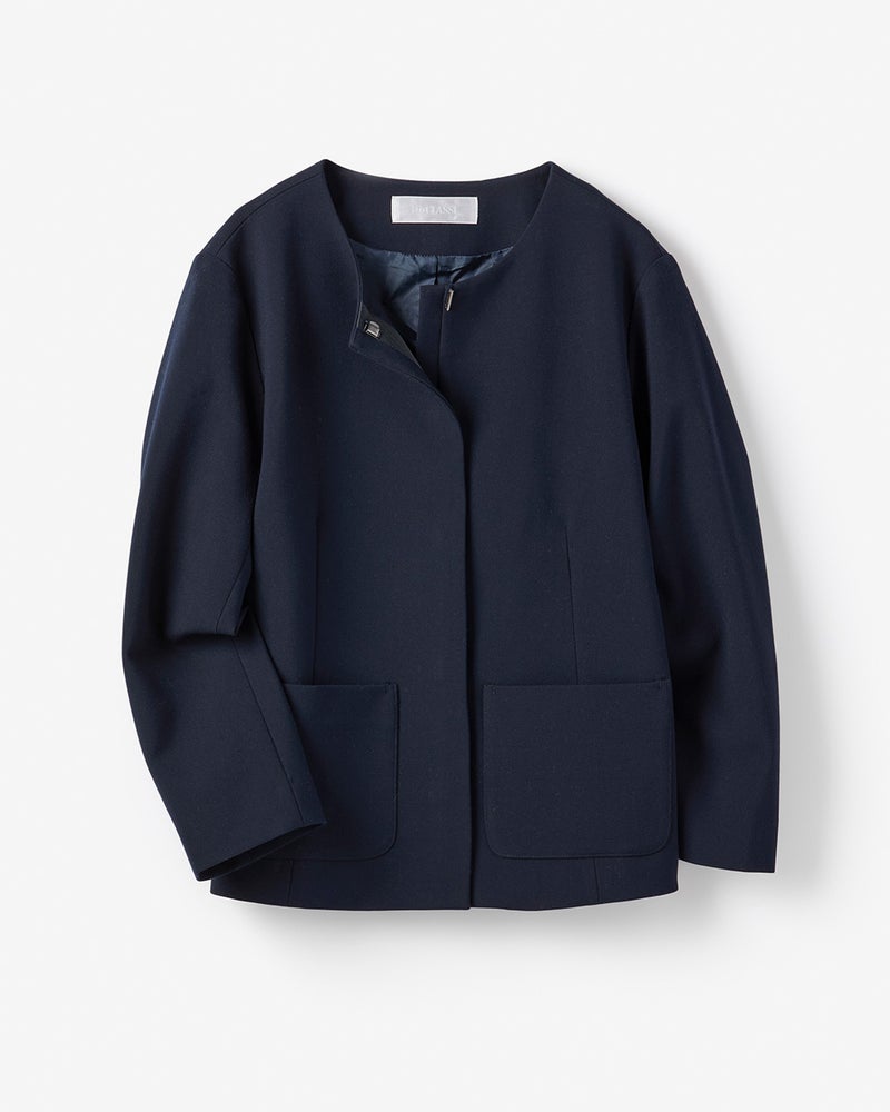 プレミアム二重織・ノーカラージャケット(ブラック)