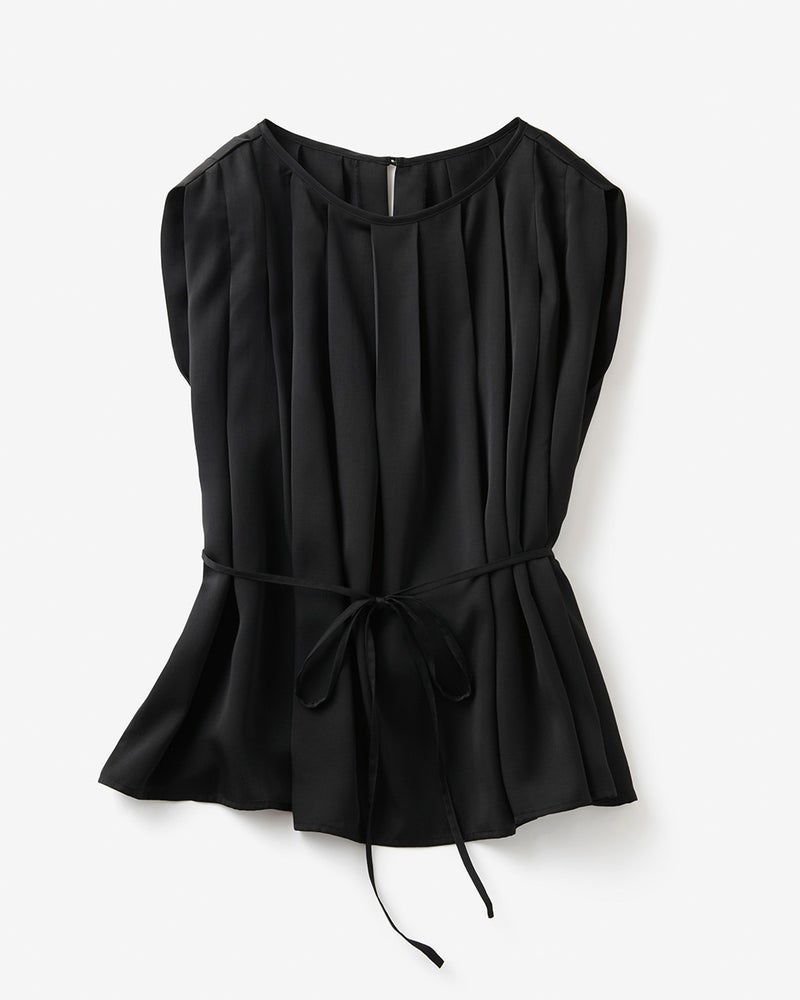 - ブラックを購入しました。 届いた時はシワだらけ。タック入りなので不器用な私にはアイロンの難易度かなり高めです。 しかし脇から下着が見えることもなく、軽くてサラサラ。気になるお腹も隠せますし、細リボンが可愛らしい。 後ろのボタンが少々面倒ではありますが購入して良かったです。