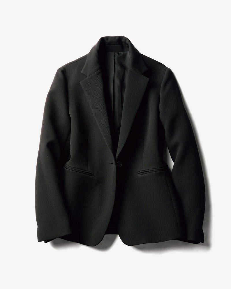 こだわりの三重織生地を使用したテーラードジャケットは、シンプルで合わせやすく、長すぎない着丈も上品。柔らかな着心地でありながら、衿もとのシャープなラインからは凛とした大人の女性の佇まいを感じます。手持ちのワードローブと組み合わせれば、いつものコーデもワンランクアップ。
