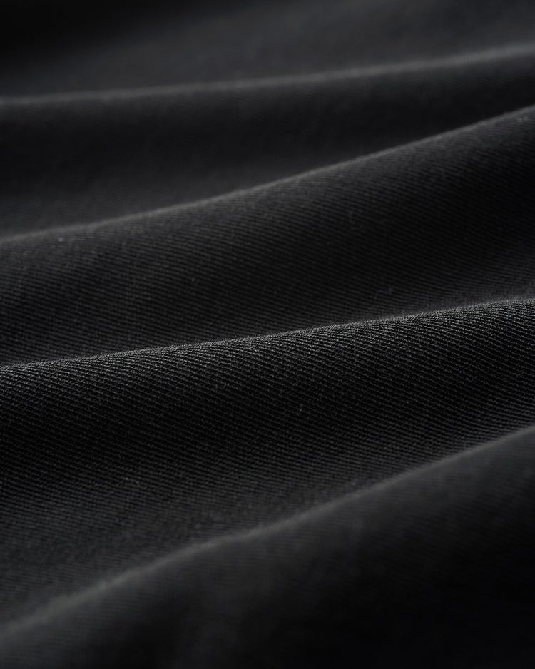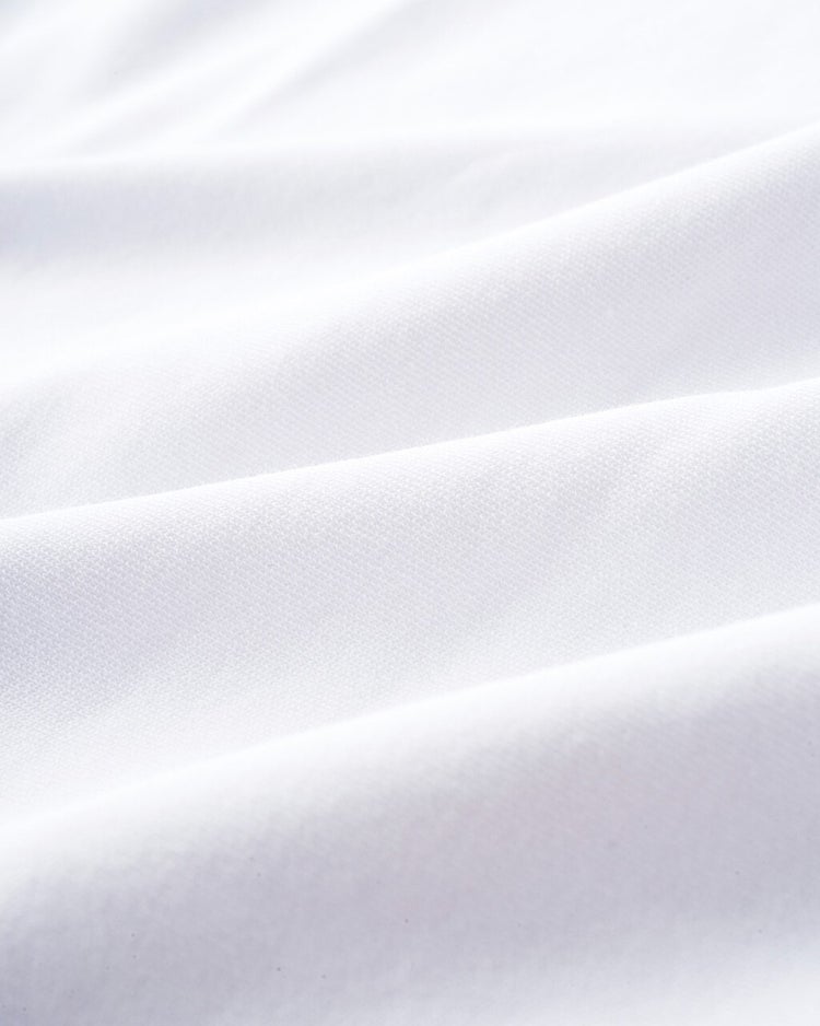 世界中で栽培される綿花のうち、わずか5%とも言われるプレミアムコットン、「超長綿」を紡いだ100番手の極細糸を贅沢に使用。2本撚糸(双糸)にしてふっくらきめ細かく編み立てた、通称「100双」のジャージー素材は、糸を強く撚ることで肌と接する面積が小さくなり、肌ばなれの良い爽やかな風合いに仕上がります。