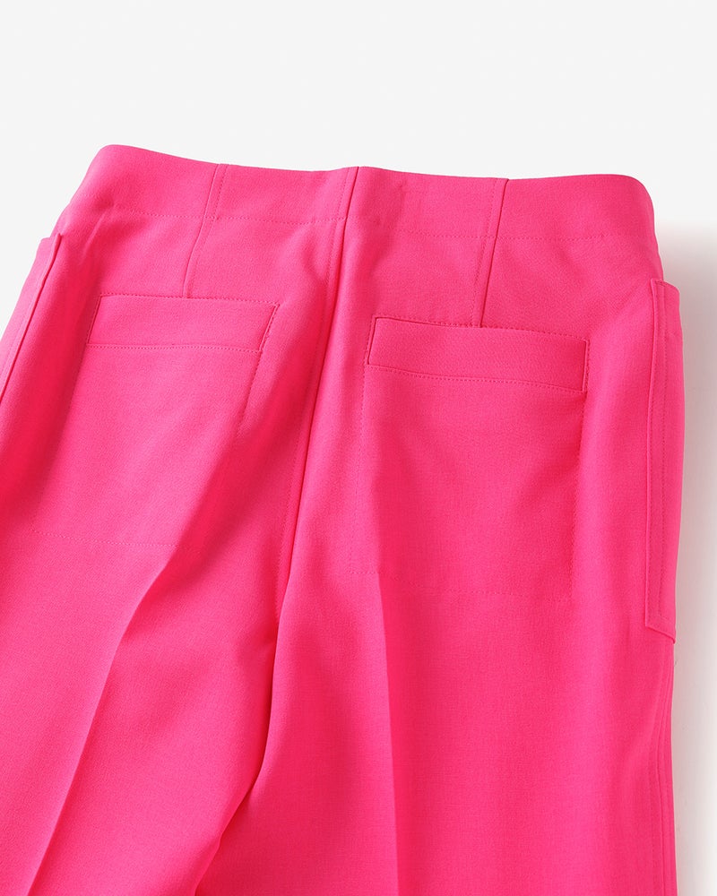 高品質の機能性生地で仕立てたストレートパンツは、フロントの大きなパッチポケットが遊び心のあるデザイン。オフィスシーンから休日カジュアルまで、幅広く着こなせる汎用性が魅力です。後ろにもポケットを2つ装備。裏面には静電気を逃がす機能糸を使用しているからストッキング着用時にもまとわりつかず、ロングシーズンお召しいただけます。
