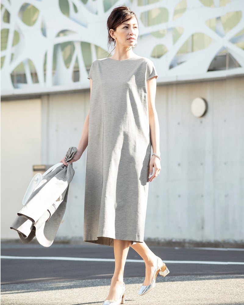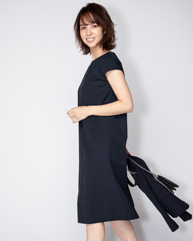 春は行事の機会も多い季節。どんな場所でも恥ずかしくなく、かつ気負いなく着られるちょうどいいデザインに仕上げました。二の腕をカバーするフレンチスリーブにも注目です。
