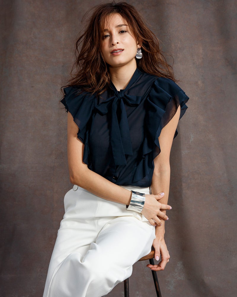 上手に引き算された大人の甘めブラウス。