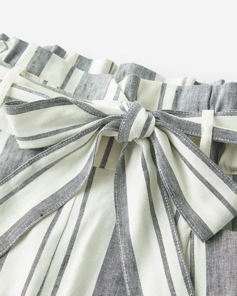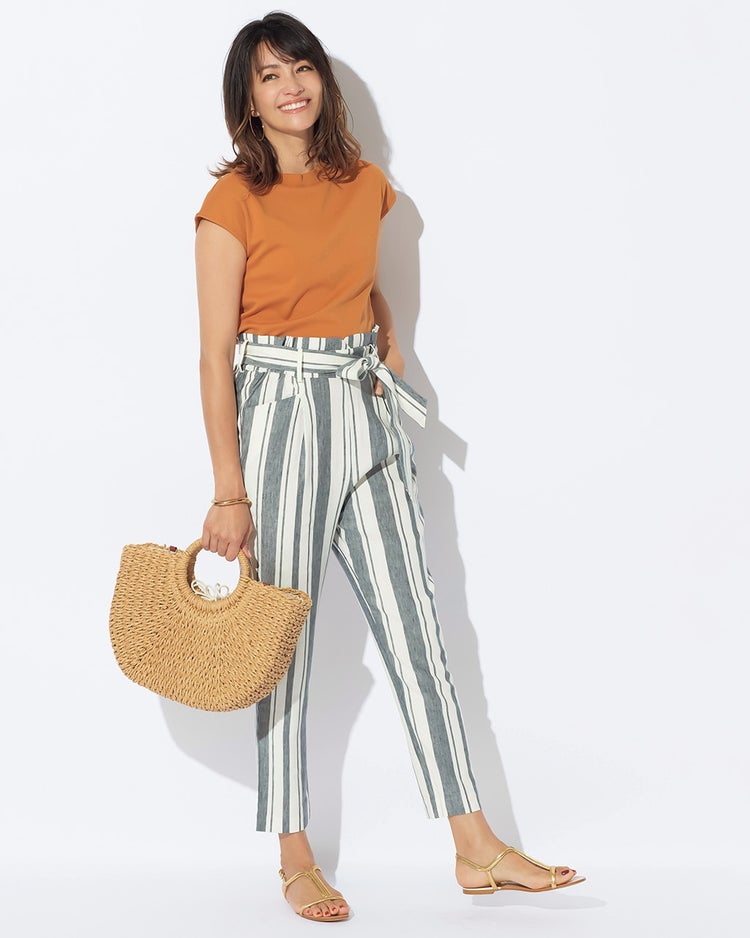 ほどよく伸びて、気持ち良くはける、リネン混パンツ。きちんと感のあるベルト付きテーパードに、ストライプ柄が登場です。