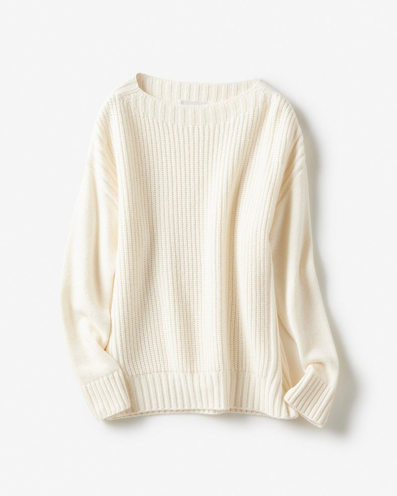 - 色はグレーベージュ、サイズは身幅が小さめなのでワンサイズ上を購入しました。冬用に暖かいセーターを探しており(本当に暖かい!)カシミヤ・畦編み・ボートネックが気に入りました。インナーは気温に応じてカットソーやシャツを合わせるのにも便利でした。ただこの先毛玉が若干心配なので星マイナス1つです。