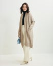- 急に寒くなってきてロングの羽織るものがほしいなと購入しました。 私は身長170cm体重60kg。肩幅も少々ありますが、なで肩気味で腕が長めです。L/XLサイズにしましたが、袖は手首を十分に隠すほどでした。長めリブの袖口がとても好みです。 ポケットがそういうデザインなのかもしれませんが、口が少しだらっとする感じです。 色は濃いミルクティー色というのかな。割と何にでも合いそうです。素材も軽く柔らかくシルエットもよいので買ってよかったです。大切に着たいと思います。