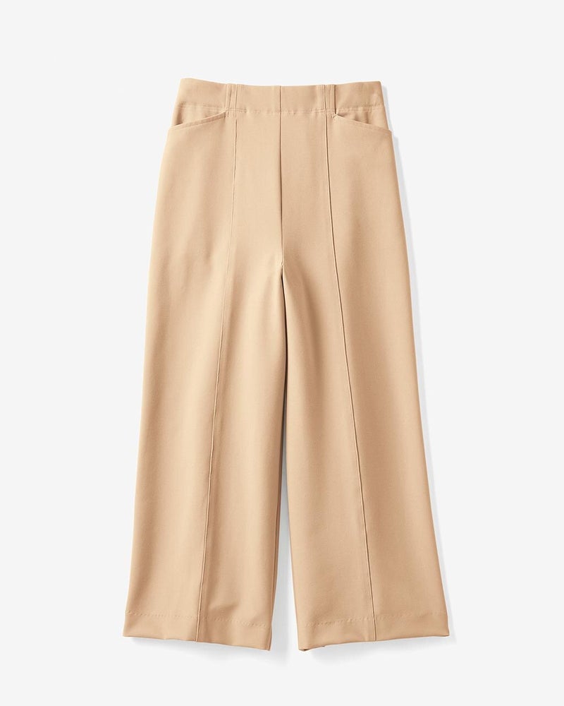 二重織素材ならではの、ほどよい厚みとツヤ感。ラクちんパンツにありがちな安っぽさはありません。