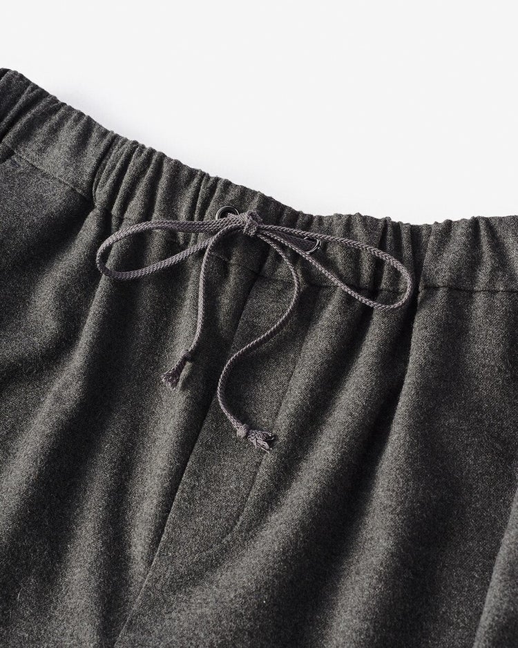 柔らかな手触りと品のある光沢のサキソニーのパンツは、ストレッチの効いた動きやすいパンツです。大人の女性を美しくみせるウールフラノ風素材。腰まわりやヒップにゆとりをもたせた先細りのシルエットなので、リラックスしたはき心地でスタイルアップ効果もあります。上質ながらシワになりにくく、手洗いできるので、旅先でお洗濯することもできます。着回し力の高い、使える一着です。