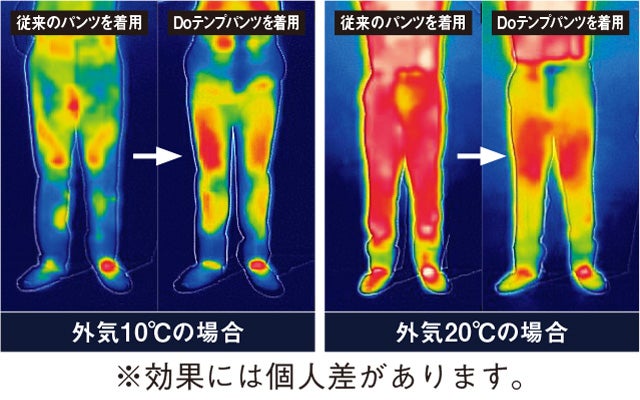 DoTempControl(Doテンプコントロール)とは潜熱蓄熱素材を閉じ込めたマイクロカプセルを生地に組み込み、そのマイクロカプセルが温度に反応して、寒いときは生地が熱を放出して身体を暖め、暑いときは生地が熱を吸収して身体を冷まし、常に快適な温度へとコントロールします。