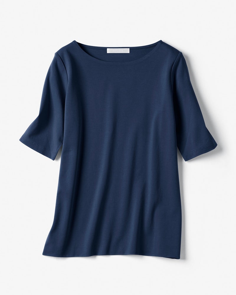 - なるほど、です。しっかりと肉厚の素材で着心地がよく、きちんと感がしっかりあります。ボートネックがどの程度がと思っていましたが、首の邪魔にもならず、程よい開き具合。ライトグレーの色合いもブルーベースの私にはちょうど良い白さでした。これは、またこのシリーズほしくなりますね。真夏は暑そうですのでTファイン狙います。いい出会いでうれしいです。