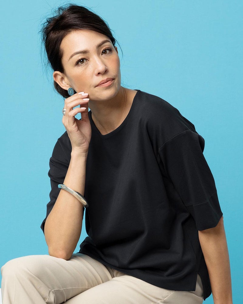 ドゥクラッセだけの「W仕立て」ブランド創成期からのベストセラー、ドゥクラッセTシャツ。1枚で着こなしの主役になるTシャツとして大人の女性から愛されてきました。前身頃を2重に仕立てた下着の見えない機能性、袋縫いで仕上げた贅沢な製法は、正にブラウスやジャケットにも負けない品格のTシャツとして大好評をいただいています。 -