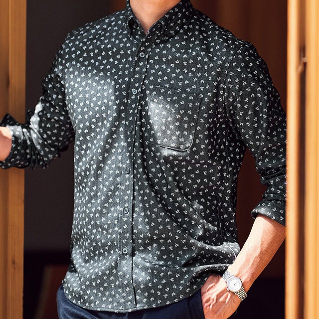 「WOOLICK(ウーリック)」は、ウールのようなふくらみとほどよい起毛感があり、ソフトな肌触りです。しかも多機能。軽量でストレッチが効いていて、ノーアイロンレベルの防シワ性と優れた速乾性を発揮するイージーケア素材です。