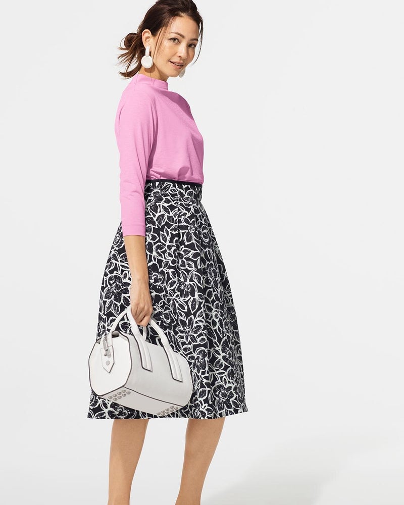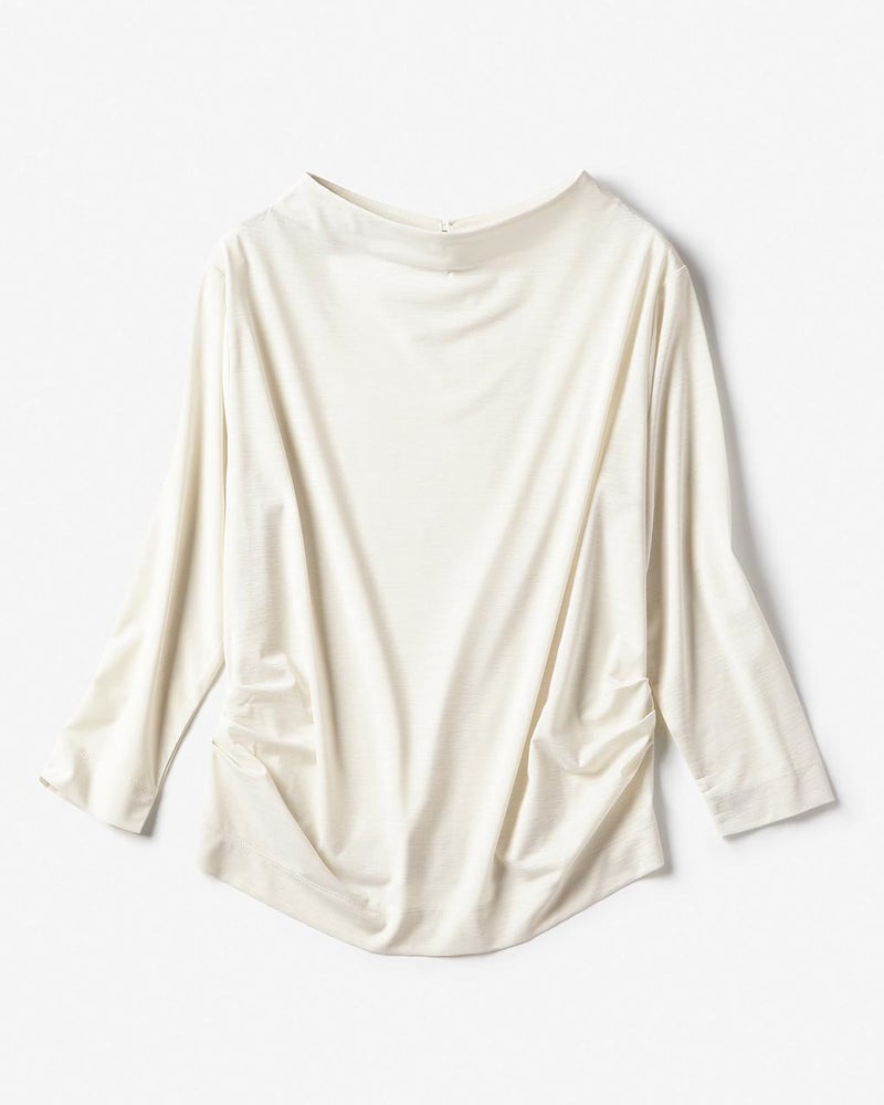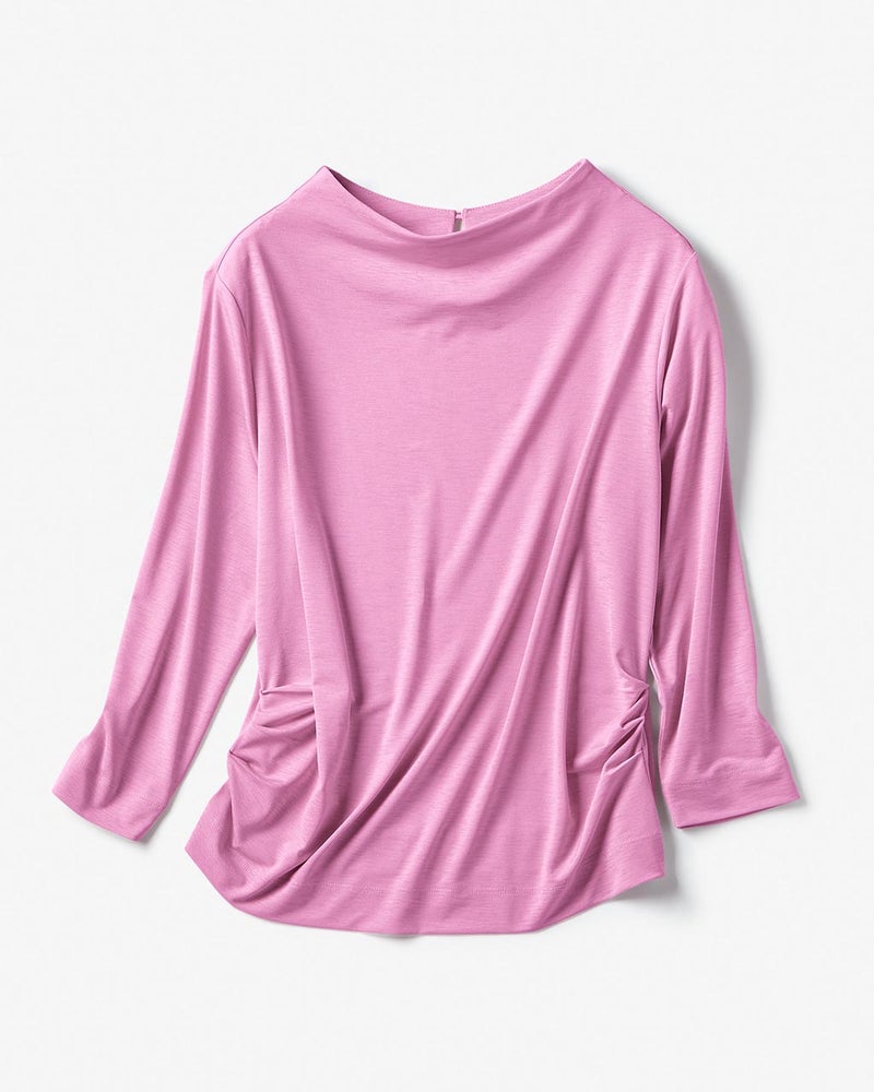 - 期待以上でした。スカートにインしないで着ますととてもウエストが細くみえます。脇の下の方でタックをとっているので、腰が細くみえます。襟ぐりも綺麗です。