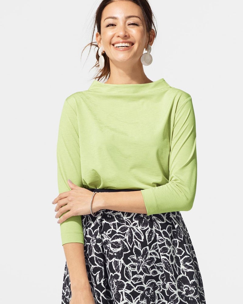 UVスラブ・ファネルネック7分袖/無地