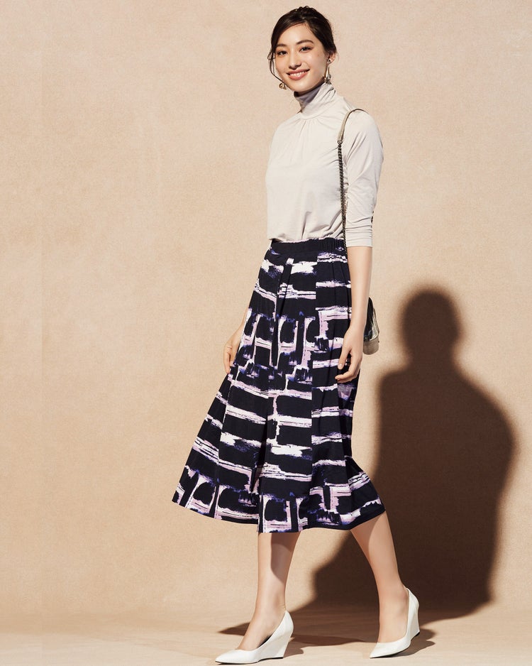 とろみ感のあるカットソーだから、シワの心配もありません。スーツケースから取り出してすぐに、パッとエレガントな装いが完成。