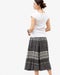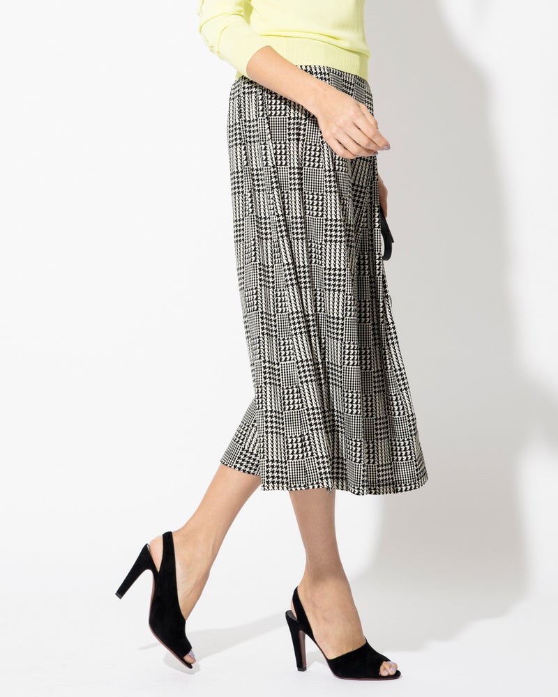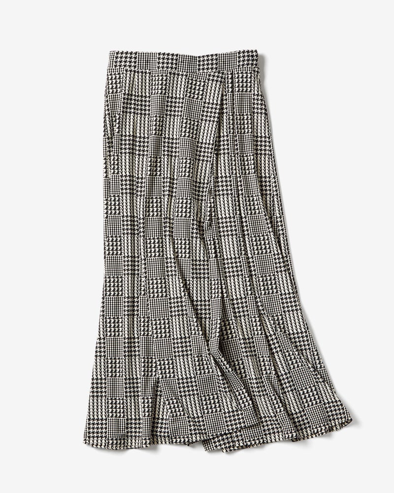一見スカートのように見えますが、実は幅広のガウチョパンツデザイン。ウエスト周りに入れたタックのおかげで、気になる体型カバーも万全です。楽ちん総ゴム仕様だから、長時間の移動にも最適。