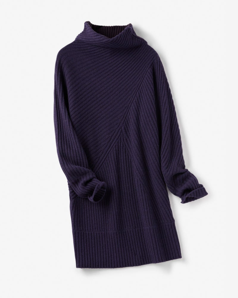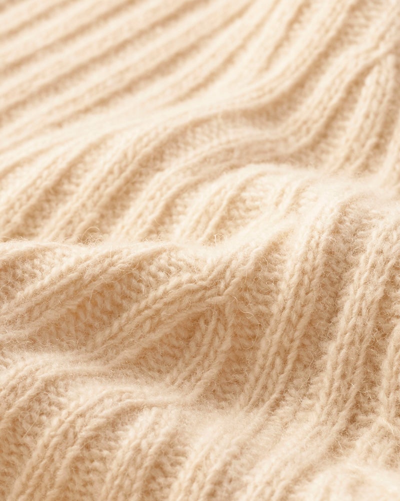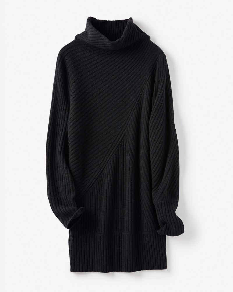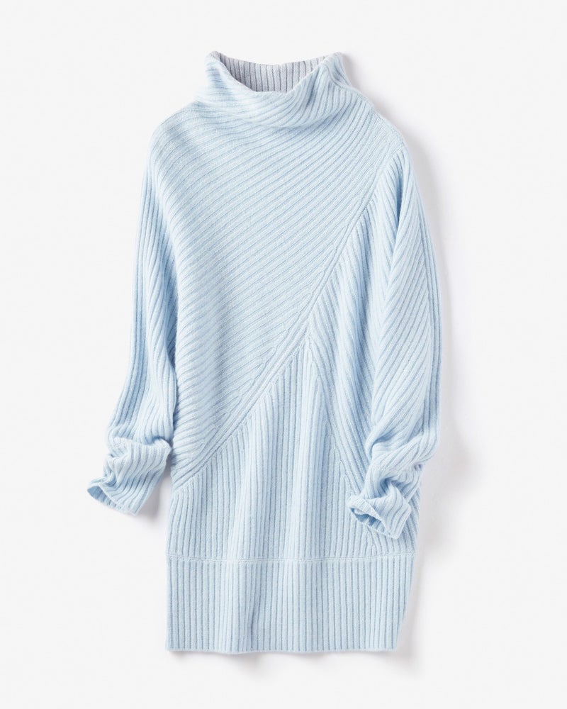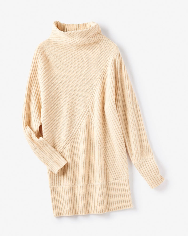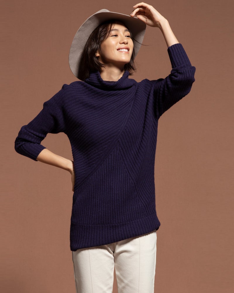 カシミヤ混・アシメリブ編みセーター