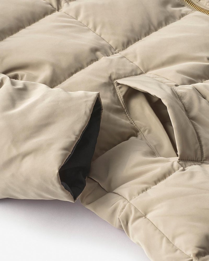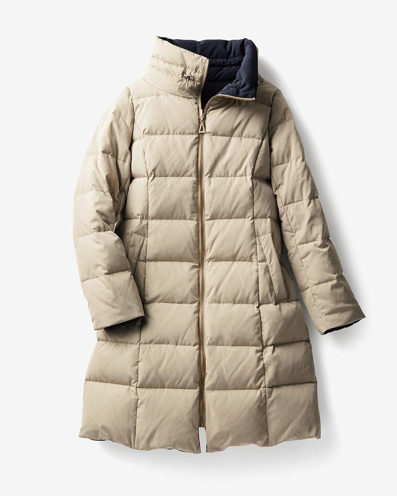 ダウンらしいキルティング面と、すっきりフラットな面、カラーだけでなくデザインも異なるリバーシブル仕様だから、毎日着ても同じ印象になりません。