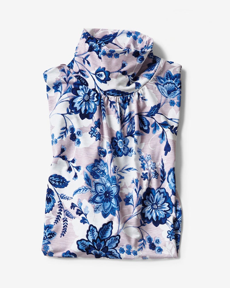□UVスラブ・ハイネック7分袖/花柄