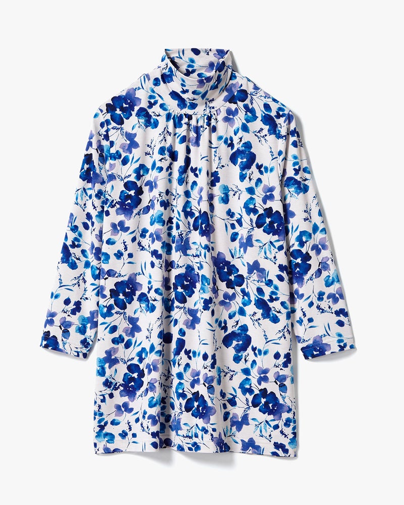 □UVスラブ・ハイネック7分袖/花柄