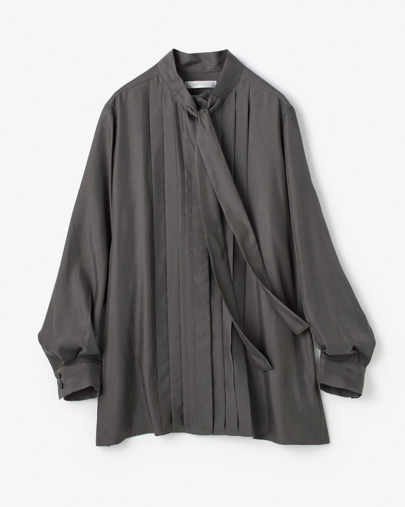 繊細なニュアンスで輝く、シックな秋色のシャンブレーブラウス。身体に馴染むとろみ感とぷるんとしたハリが、女性らしい曲線を美しく際立たせます。ボウタイを緩く結んでも立体感が生まれサマになるのも、上質素材ならでは。