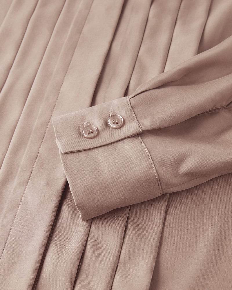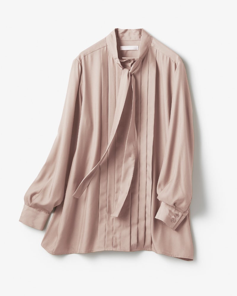繊細なニュアンスで輝く、シックな秋色のシャンブレーブラウス。身体に馴染むとろみ感とぷるんとしたハリが、女性らしい曲線を美しく際立たせます。ボウタイを緩く結んでも立体感が生まれサマになるのも、上質素材ならでは。