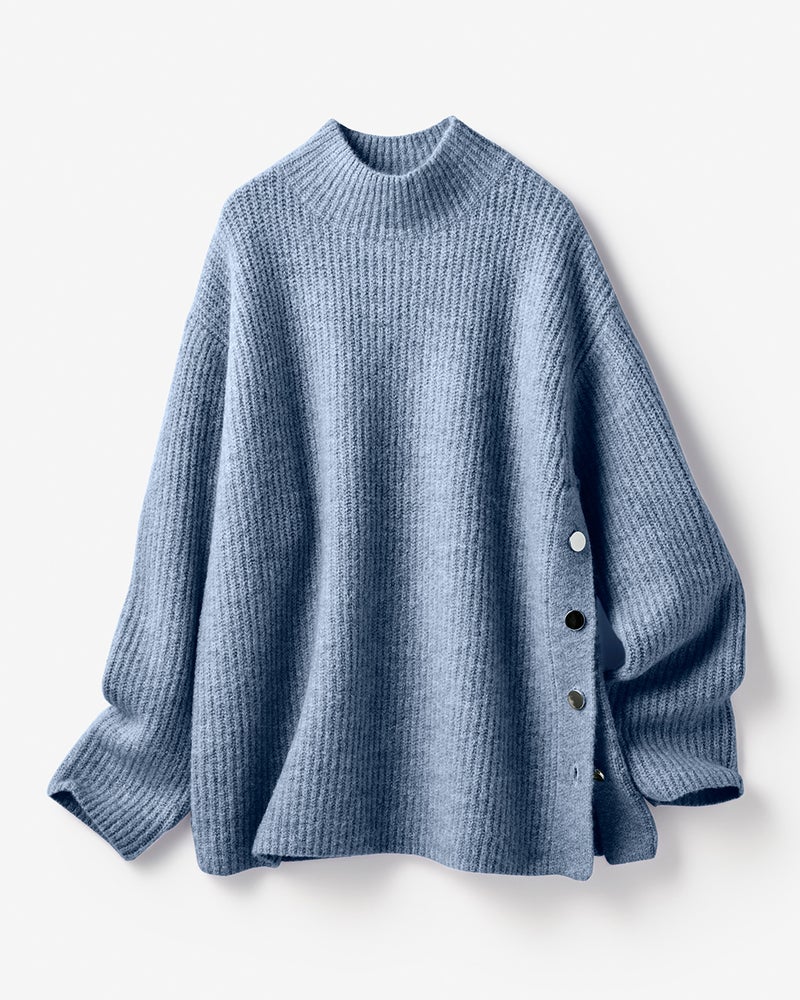 ウール混フラッフィー・サイドボタンハイネック