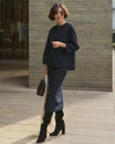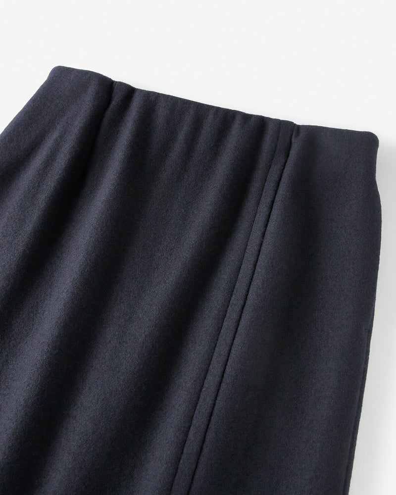 普段のサイズ:11号 着用サイズ:9号 - ウールジャージー素材でとても着心地が良く動きやすいです。上下合わせて着用するときちんと感が出ます。スカートは裏地つき、裾スリットは開き過ぎず上品で、ウエストは総ゴム仕様なのでとても楽です。トップスの首周りはクルーネックでゆったりしており、寒い日には中にタートルネックやハイネックを着用しても良さそうです。