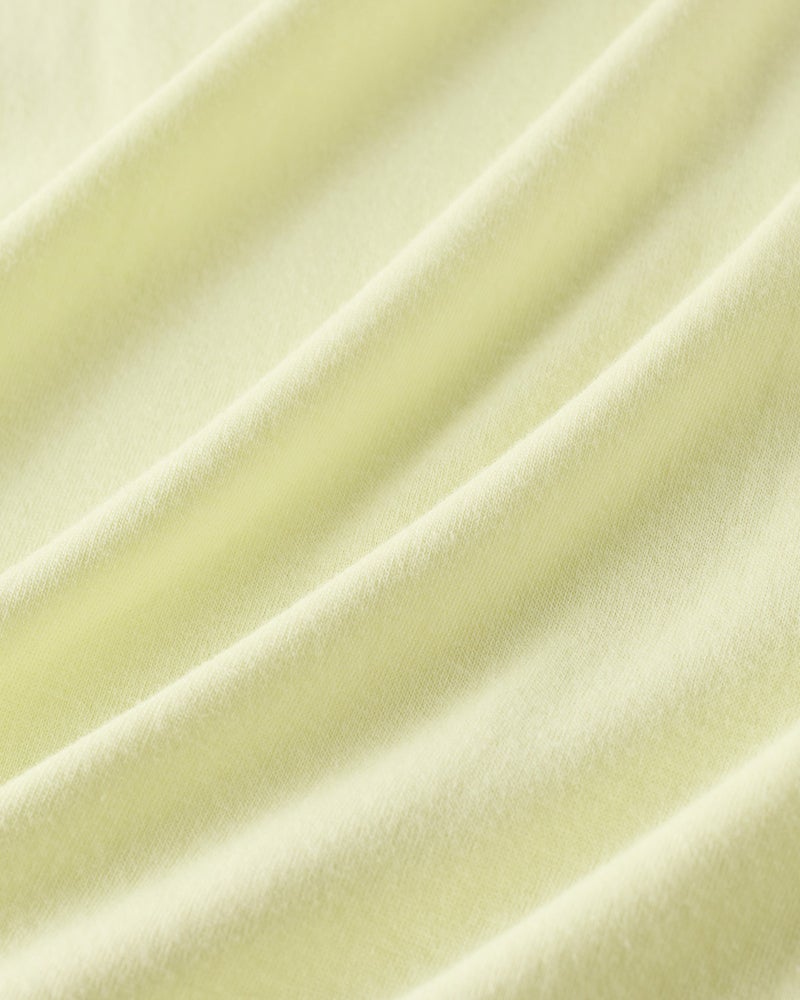 空気を含むように甘く柔らかく編みたてた綿100%の編地に洗いをかけて、ふんわり優しい風合いに仕上げました。
