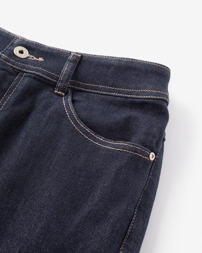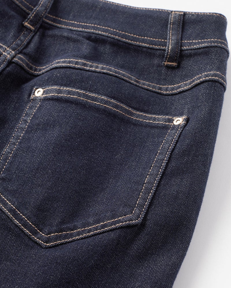 - インディゴブルー7号購入。ゴム無しなのでどうかなと思いながら購入しましたがサイズぴったりでした。丈詰めなしですし履いた感じ楽です。横から見たラインも綺麗です。