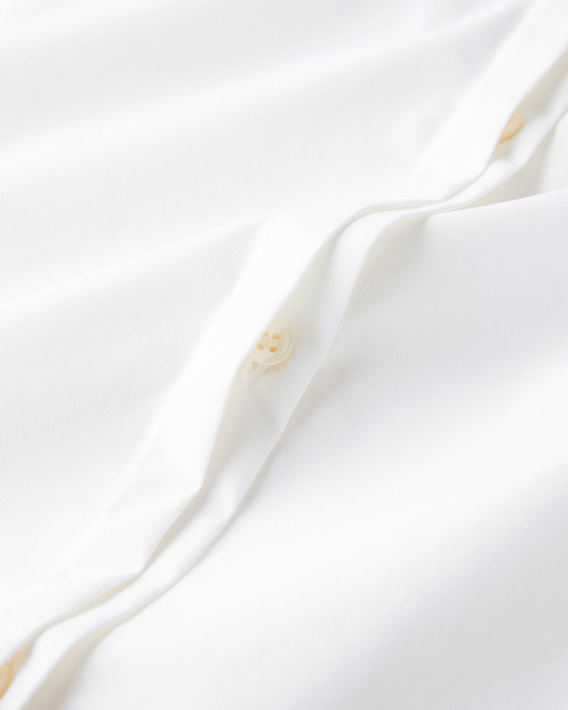 フォルムが美しく表現できるハリと、シワが気になりにくいなめらかさを両立したコットン混生地を採用。