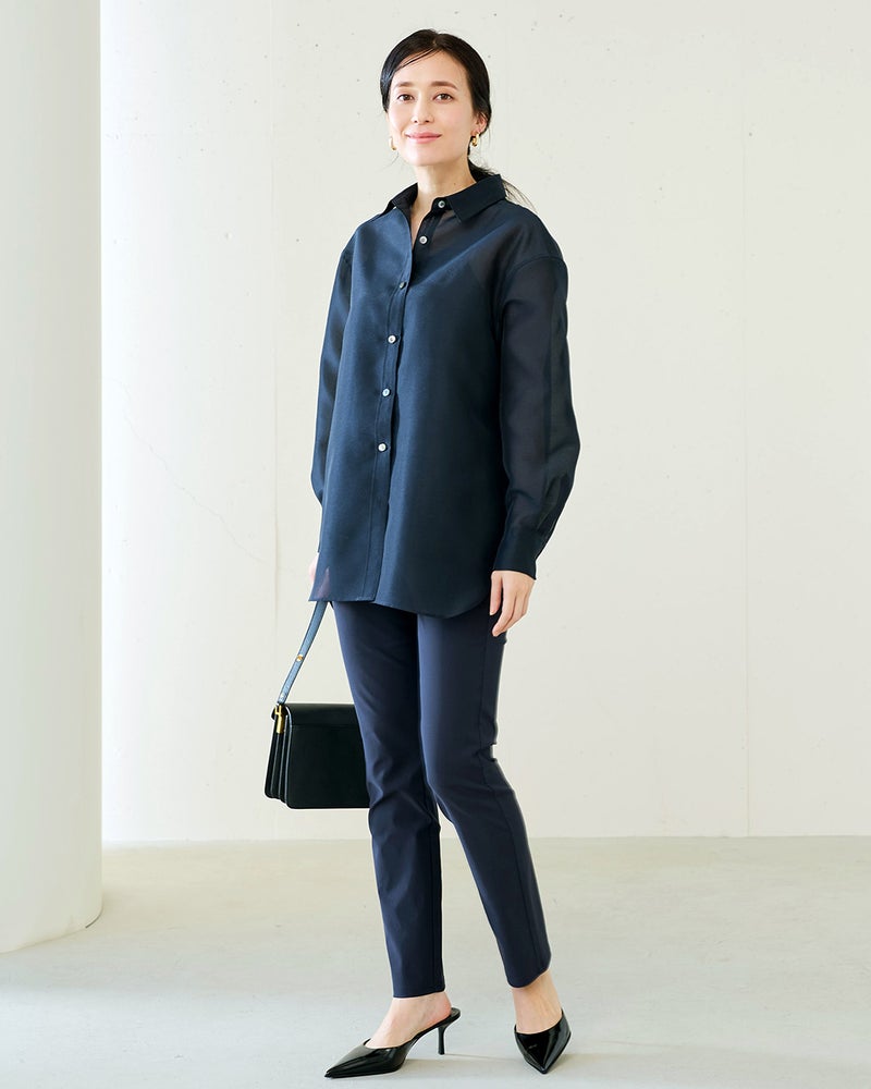 - カタログではスリムパンツに見えたのですが、実物はテーパードパンツのように感じました。身長163cmで股下68cmだとくるぶしより少し上。丈ももう少しだけ長かったらいいかな。
