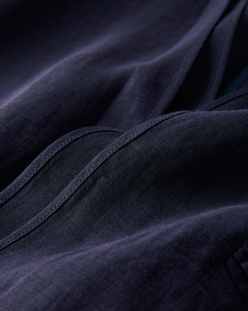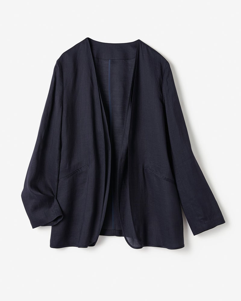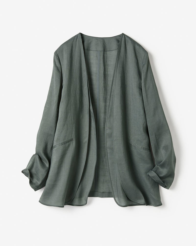肌離れの良いさらっとドライな質感と、美しい光沢が魅力の春夏の快適素材・ラミー(苧麻)で、シャツのように薄く、軽やかな着心地のシアージャケットを仕立てました。