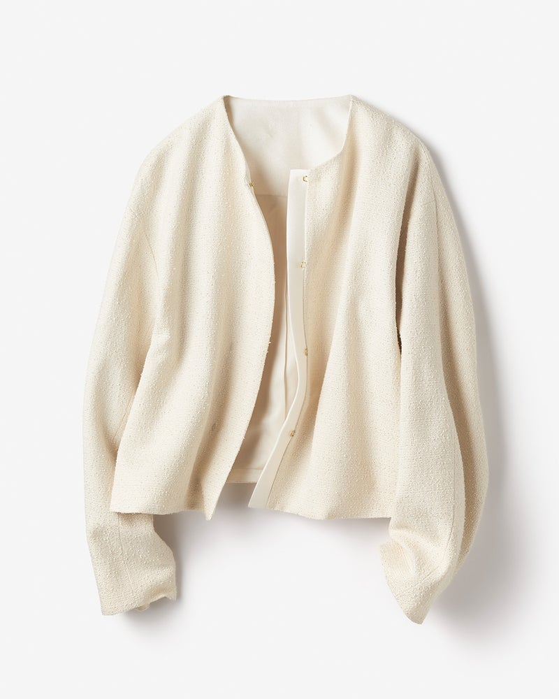 アクセなしでも華やかに着映える、質感MIXのループツイードアイテム