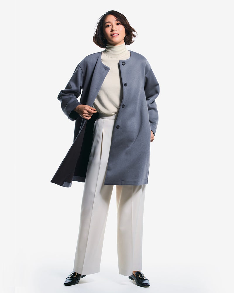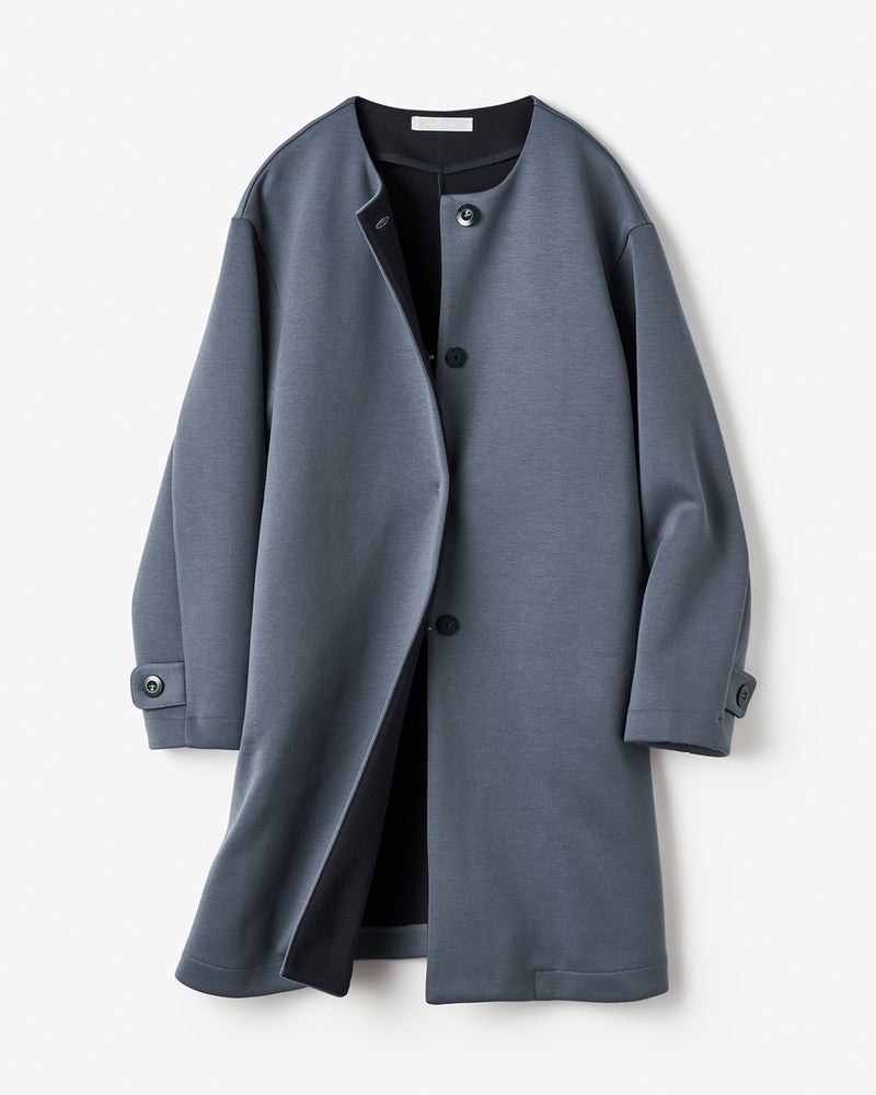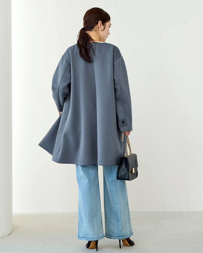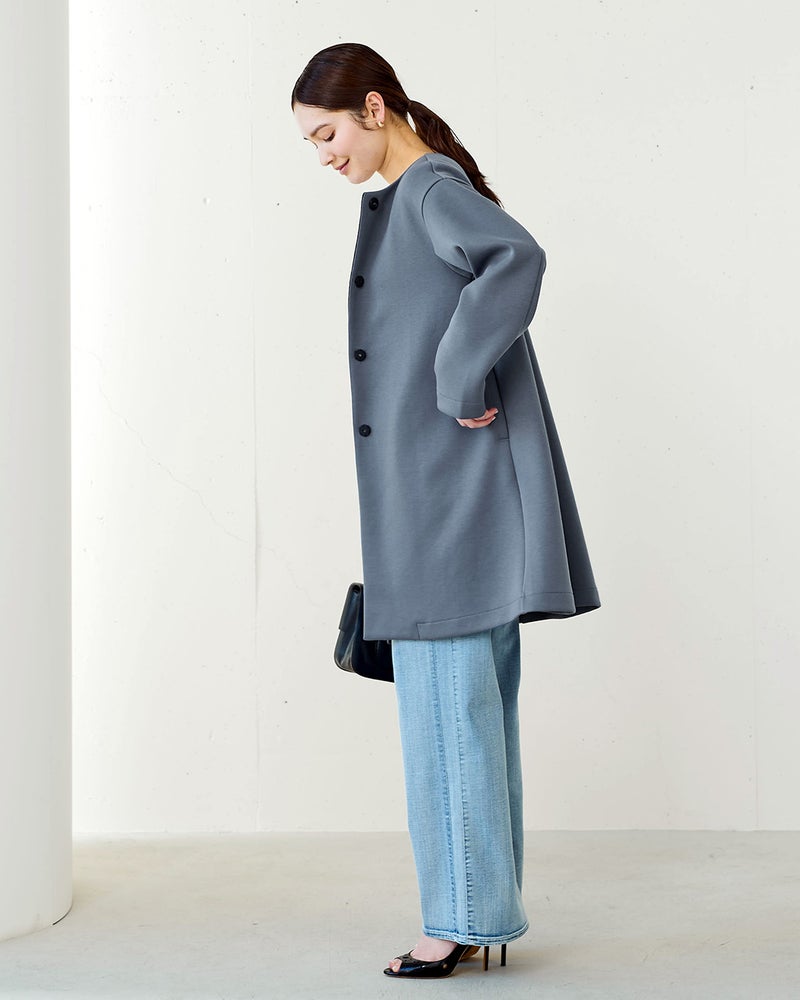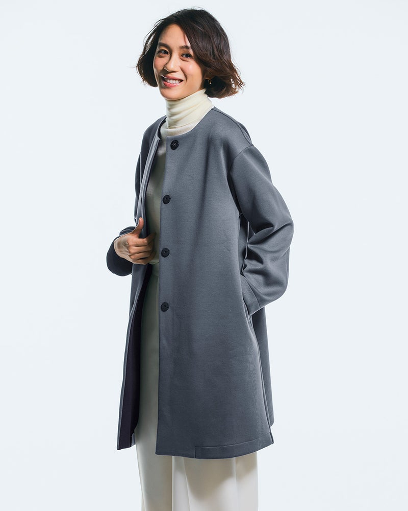 ストレッチ素材のきれいめノーカラーコート