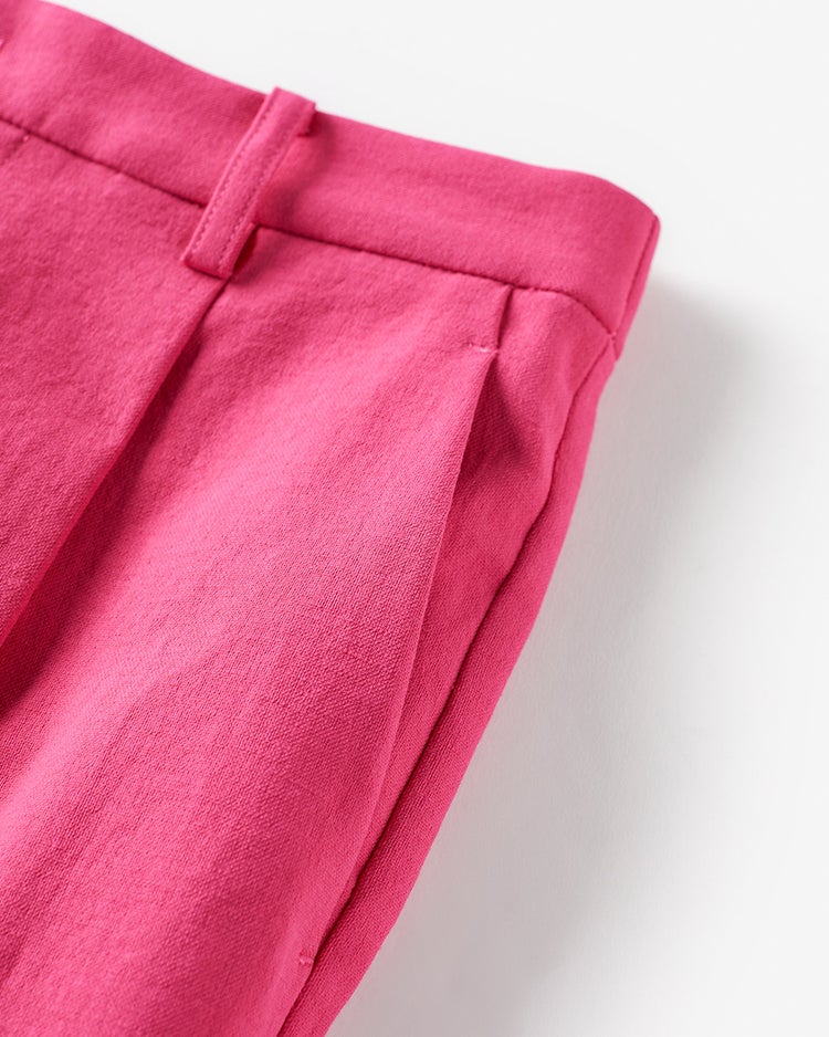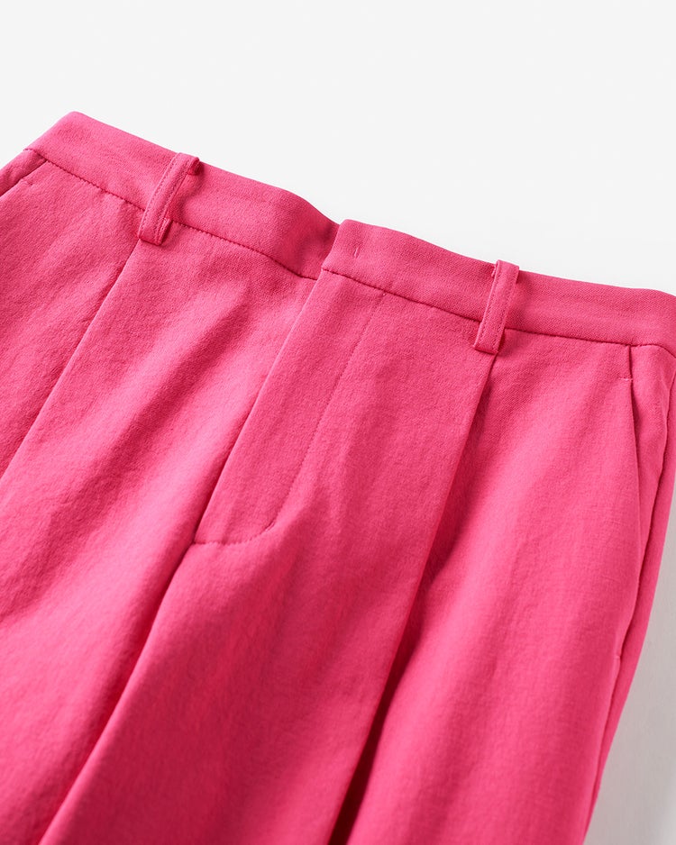 美しい織目の麻混素材で仕立てた、上品にもカジュアルにも使えるきれいめワイドパンツ。タックとつながるセンタープレスですらっとした印象に。後ろウエストゴムで着心地も快適。
