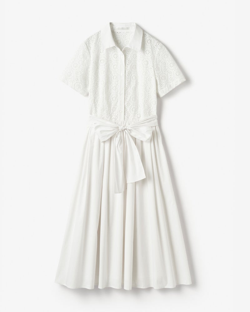 レース刺繍・コットンシャツドレス