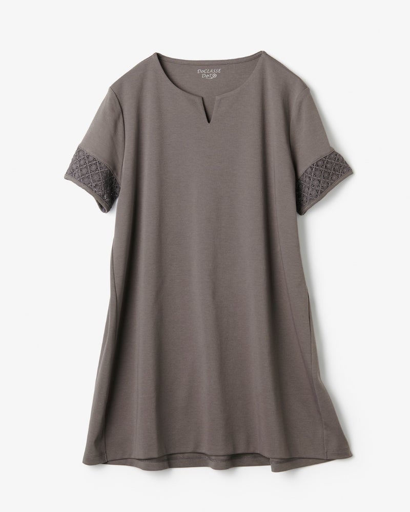 • レースデザイン/半袖チュニック・ドゥクラッセTシャツ 詳細画像 チャコール 1