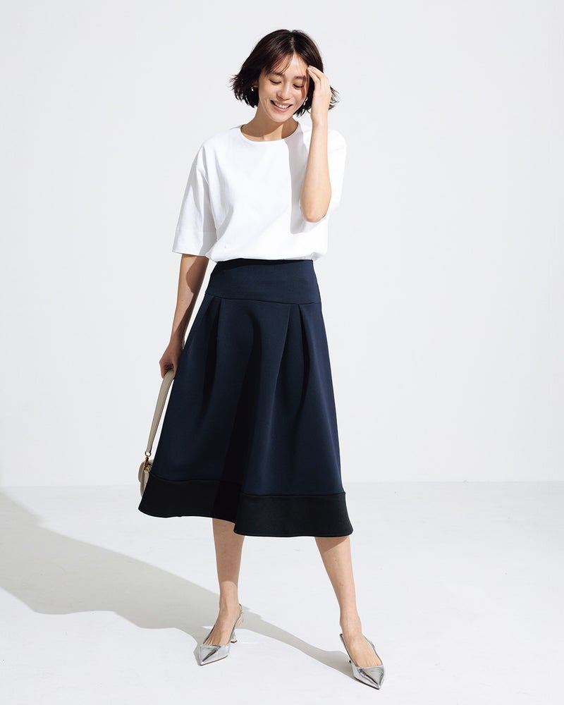 • ダブル編みジャージー・切替えフレアスカート 詳細画像 ホワイト・パターン 1